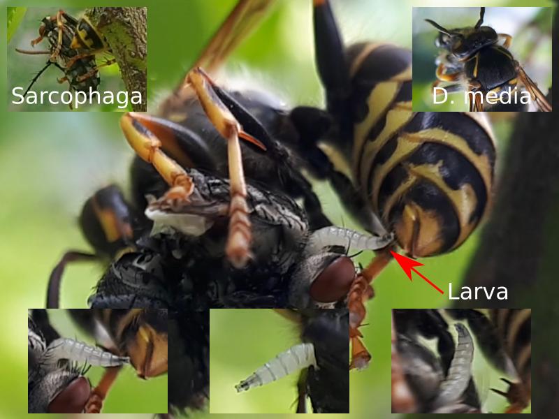 Sarcophaga sp. ♀ with larvae - prey of Dolichovespula media
