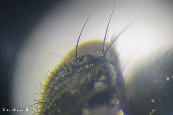 The orbital plate in your photo only has a strong seta - there are no accompanying hairs / setulae - so then on to couplet 36 In my latest version of the key - I have omitted couplet 37. If you email me I will send you the latest version (see private messages) At this stage this specimen looks like L. peregrina Iain Iain MacGowan |