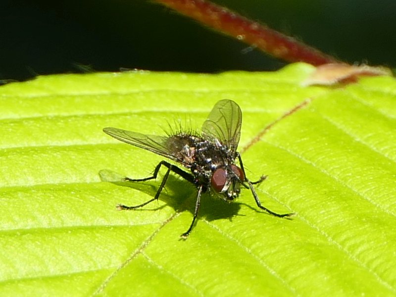 an ~8 mm fly in our garden (northwest Germany). Sorry, no better pictures.