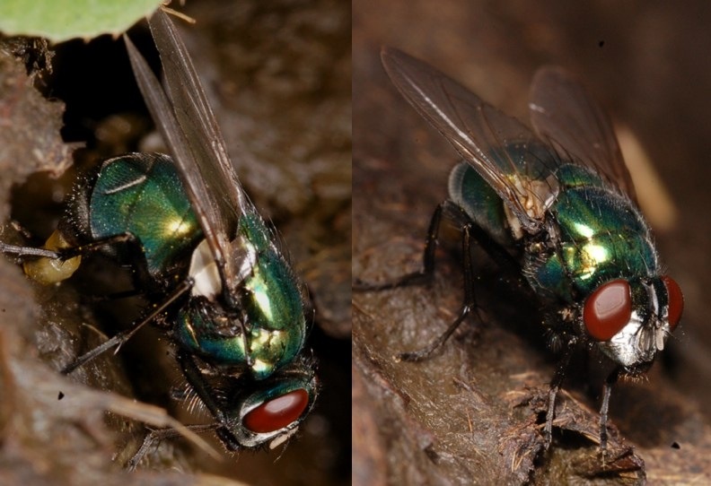 green calliphorid on caw dung