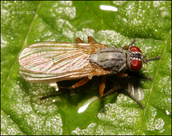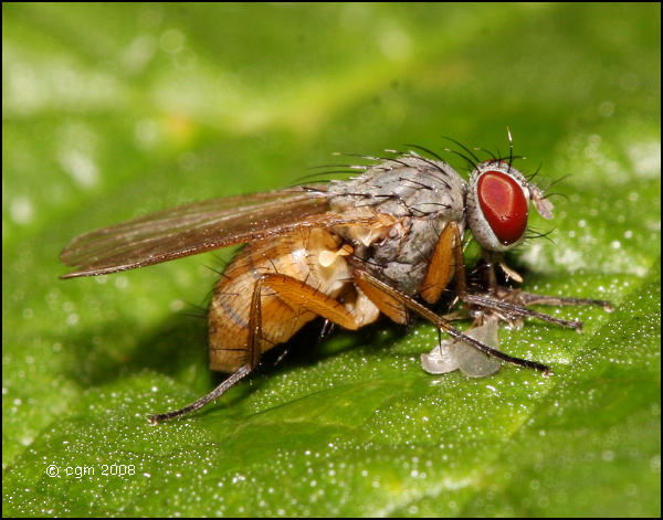 Location: Midwest Sweden (Dalsland) Date: 2008-JUL-20 This seems to be a pretatory Muscidae. Is it perhaps something like ... Coenosia mollicula or Thricops semicinereus? I don't know if the latter is predatory. crex attached the following image: ![]() [189.63Kb] Edited by crex on 15-08-2008 15:31 |