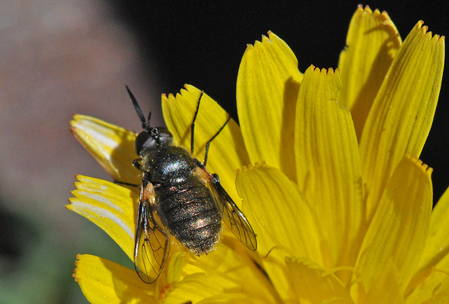 I thought this would have been a different species than a previous U. aeneus I published here. I think it was a bit smaller, and seems to have fewer white hairs on the torax. Also, the black markings above the light ones at the base of the wings are more marked. Although, I could be wrong. Thanks, Guillermo. |