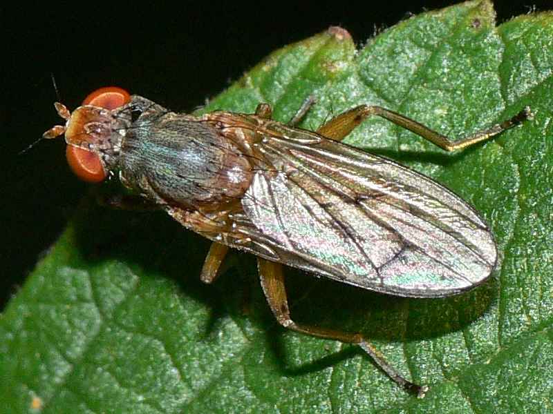 Blue-grey and yellow-reddish: Heleomyzidae? --> Sciomyzidae, Pherbellia cf. scutellaris