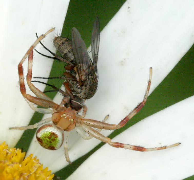 The fly is Siphona sp. (Tachinidae), spider Misumena vatia male. Jaakko |