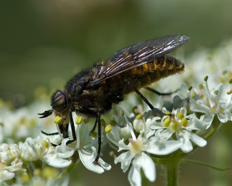Seen in Hasliberg, Switzerland; 5 July 2008. Altitude ca 1000 m. Feeding on Hogweed in hey land. Dark, but with fringes of orange-golden hairs along tergites/sternites. Three band across eyes. Is it Hybomitra? Species ID possible? Cor Zonneveld attached the following image: ![]() [99.36Kb] Edited by Cor Zonneveld on 11-10-2008 21:42 Thanks for your attention Cor Zonneveld |