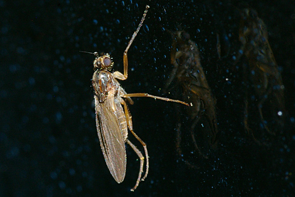 Brown fly with Gold coloured beard<Lonchopteridae