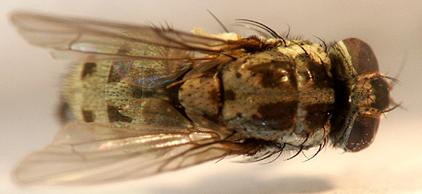 Am I right with Limnophora tigrina, female? The dorsal thoracic pattern is distinctive looking. 5.5mm, from 2 June 2008, lowland central France (<100masl), la Brenne, damp woodland edge. Susan R Walter attached the following image: ![]() [67.38Kb] Susan |
