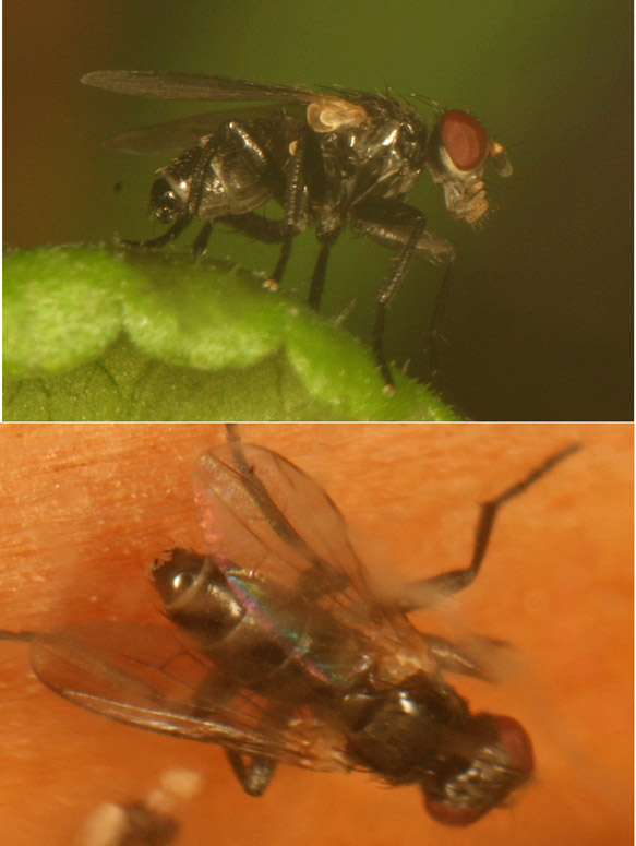 At home I have a aquarium filled whit soil, to see what flies are coming out of the soil. And today I spotted my first Muscidae! The sice is about 4mm and I think it could be a Hydrotaea. But I had to make photo's through the glass, because when I open the cover, all other flies are flying into my livingroom... ![]() Is it Hydrotaea(H.irritans / H.pellucens..??) or maybe a Haematobia ? Joke javanerkelens attached the following image: ![]() [118.05Kb] Edited by javanerkelens on 06-01-2009 21:48 |