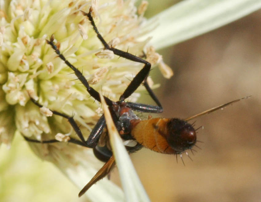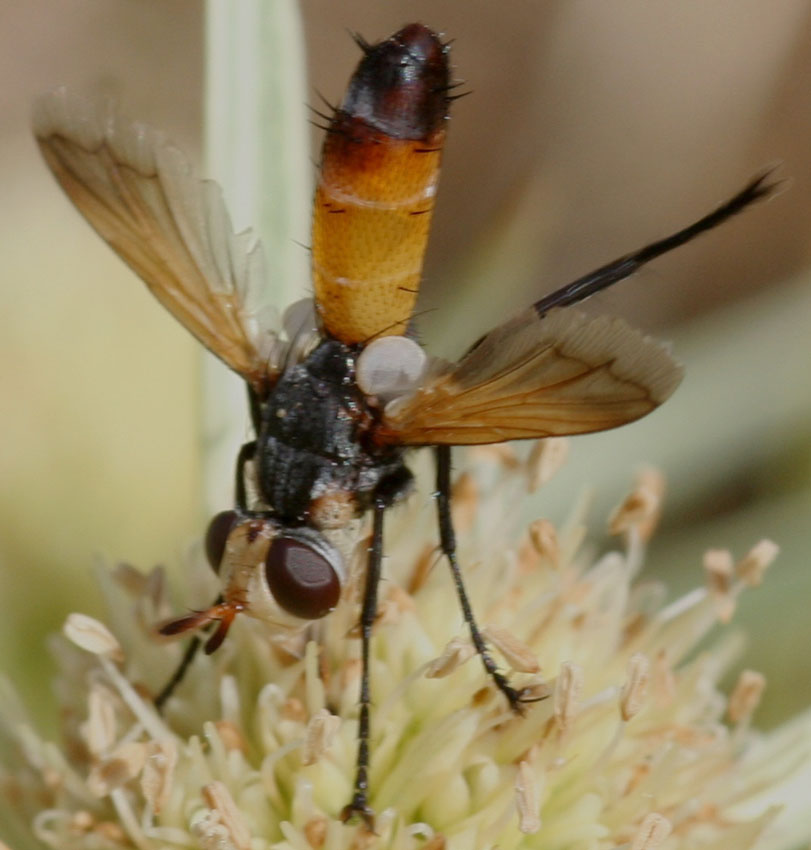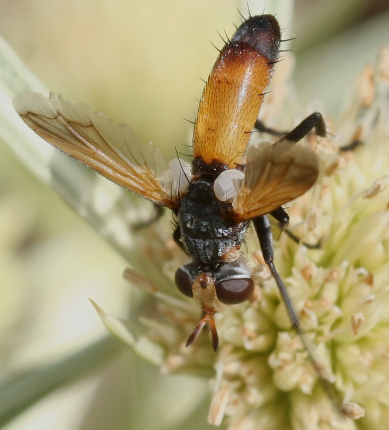 Interesting, I remembered that you'd said rufifrons lacked vibrissae but when I checked Tschorsnig's key it implied rufifrons just had short vibrisae and that it wouldn't have pv bristles on the hind tibia - but this one seemed to have them. Is that just an error in Tschorsnig's key to Cylindromyia? |
