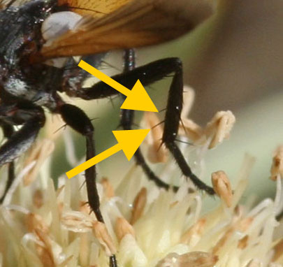 I have PhotoShopped it and the bristles certainly seem to pass behind the tibia so they are not ads.