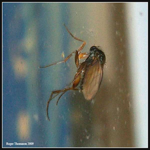 This one was lost due to recent fault. It was ID'd as a species of Phoridae by Jorge..can anyone take it any further? I have no Phoridae on my Checklist, but as it was found in a friends Conservatory it has probably come in with some of his plants, (possibly from when he overwinters in Soller in Majorca). Sorry for quality of shots but a small,3-4mm very active fly running around on a window isn't an ideal subject for 1st fly seen/photographed in weeks. Roger Thomason attached the following image: ![]() [32.84Kb] |