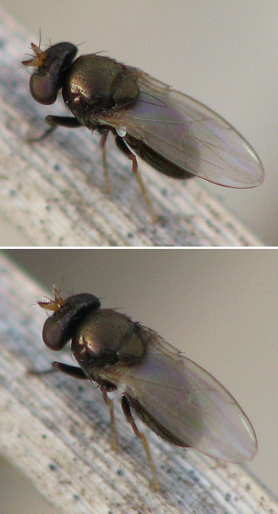 Hi, Here is another one from my garden in last June. It is a tiny black one with yellow legs, and it is no Chloropid. I am sorry I have no better pics. Is ID possible? Thanks, Sundew Sundew attached the following image: ![]() [159.97Kb] |