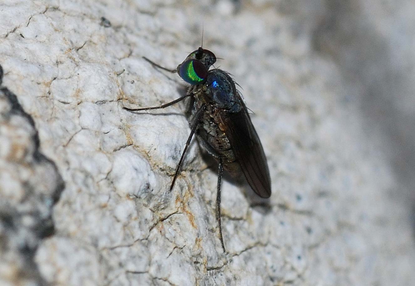 Hi I found these two small flies walking on lichen-rich calcareous rocks in northern Spain (Alava) at about 800m high. The first beautiful-eyed one is about 2mm long, the second blackish one about 3 mm. I would appreciate any help in the identification! Miquel Filex attached the following image: ![]() [98.39Kb] Edited by Filex on 19-04-2009 22:24 |