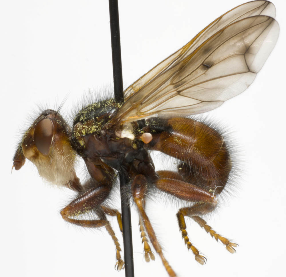 Hi, I finally found my key and believe this is indeed vicaria with long black hairs on face, brown palpi and dark triangular spots on T2. Jari |