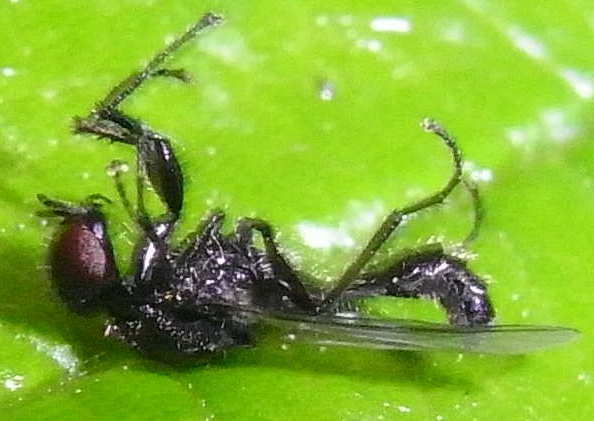 Found a lot of those flies, dead, on leaves in Brussels on May 2nd. Homalocmenis sp?