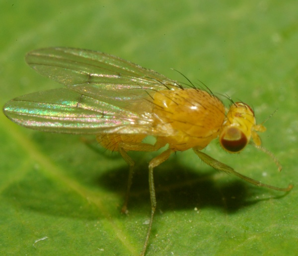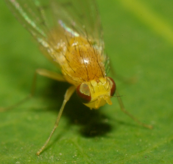 This is the sammlest Lauxaniid I've seen, less than 3 mm long. By forest.
