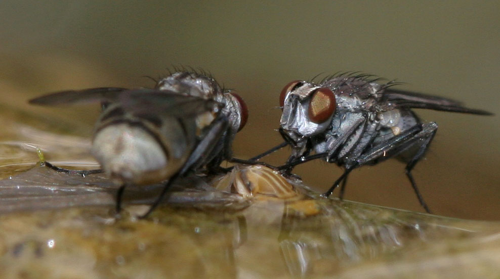 Thnk you Tony, it was your help I waited for! P.S. 1. To be precies, in case of Limnophora it isn't prey, but unvertebrate carrion always. (In contrast with Liancalus virens, who is a real predator.) 2. Rather rare species L.pulchriceps. I add another image of male and female feeding on dead Ephemeroptera Nikita Vikhrev attached the following image: ![]() [94.26Kb] Nikita Vikhrev - Zool Museum of Moscow University |