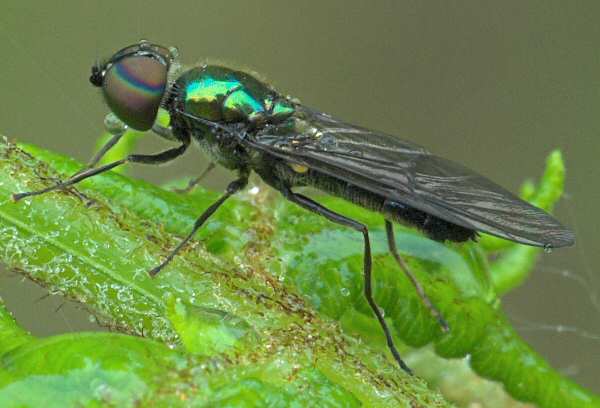 Found this morning. Seems to be Sargus - about 10mm, longish abdomen, eyes not obviously hairy. Presumably Sargus iridatus on size and date? Please correct me if I'm wrong. mixed woodland, grass clearing. Devon, England. thanks Tim tim worfolk attached the following image: ![]() [78.88Kb] |