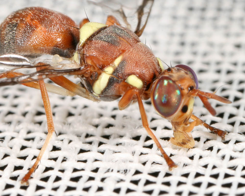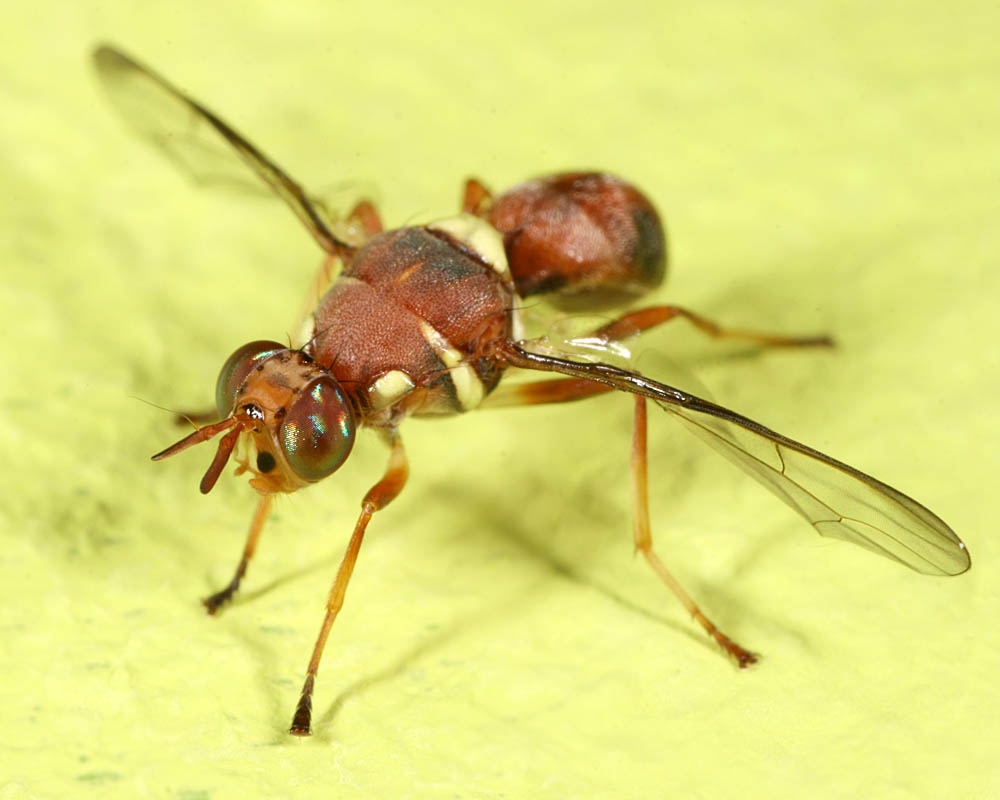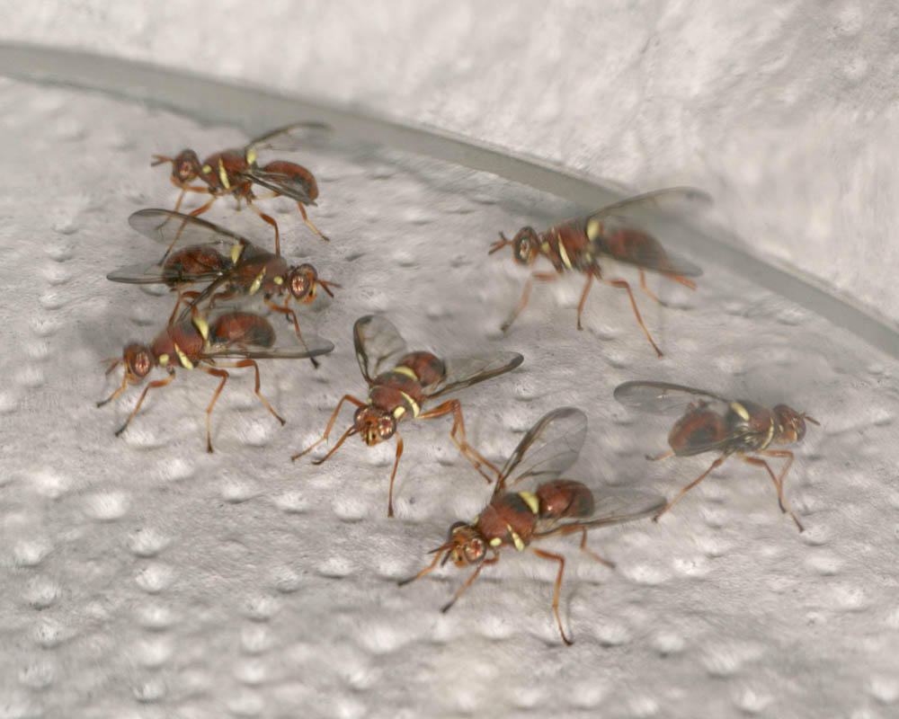 this afternoon I found another 6 of them! Now I have got 2 females and 5 males. And I am a bit sure they come from our bunch of flowers. In this bunch there are big seed pods, that could explain there appearance. All these flies I collected now in a bottle and they are still alive. Hereby a male of these flies Robert Heemskerk attached the following image: ![]() [94.9Kb] Edited by Robert Heemskerk on 16-05-2009 14:50 Greeting, Robert Heemskerk ---- WWW: http://robertheem...ndedag.htm --- |