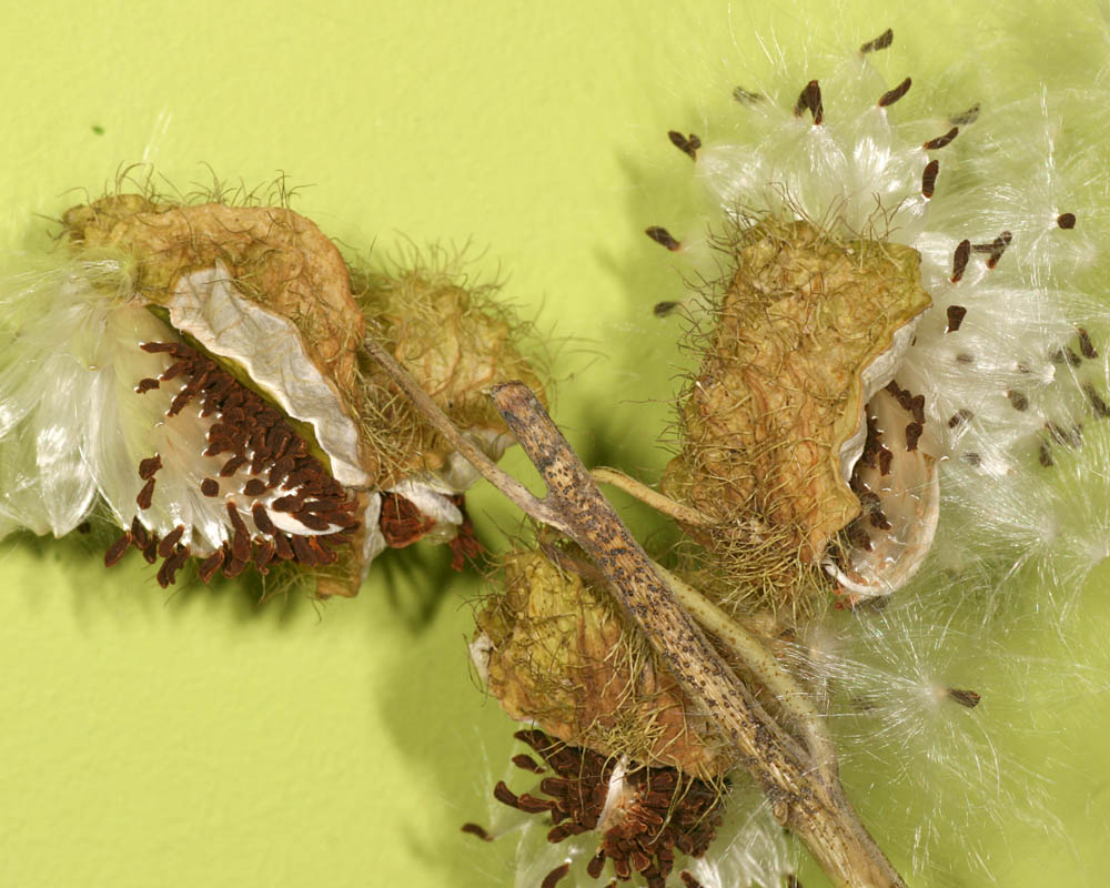 The seed pods clearly belong to Asclepiadaceae (now subfamily Asclepioideae of Apocynaceae), so Valery's question whether these plants are nearby can be positively answered ! However, this species is not native to the Netherlands...