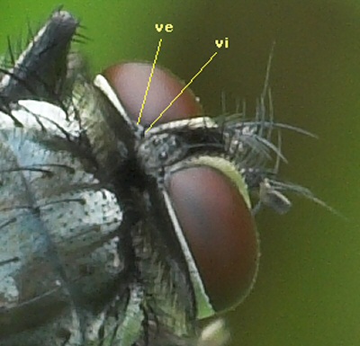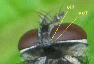 ve and vi are terms used in the European keys ... I always remember them as "vertical exterior" and "vertical interior". Basically the inner and outer vertical bristles - the tall vertical bristles between the eyes and behind the ocellar triangle, in front of the post ocular hairs. ![]() Thelaira can be a bit of a tricky genus because individuals are quite variable but the ve provides another handy feature that can confirm an ID. Edited by ChrisR on 19-06-2009 09:34 Manager of the UK Species Inventory in the Angela Marmont Centre for UK Biodiversity at the Natural History Museum, London. |