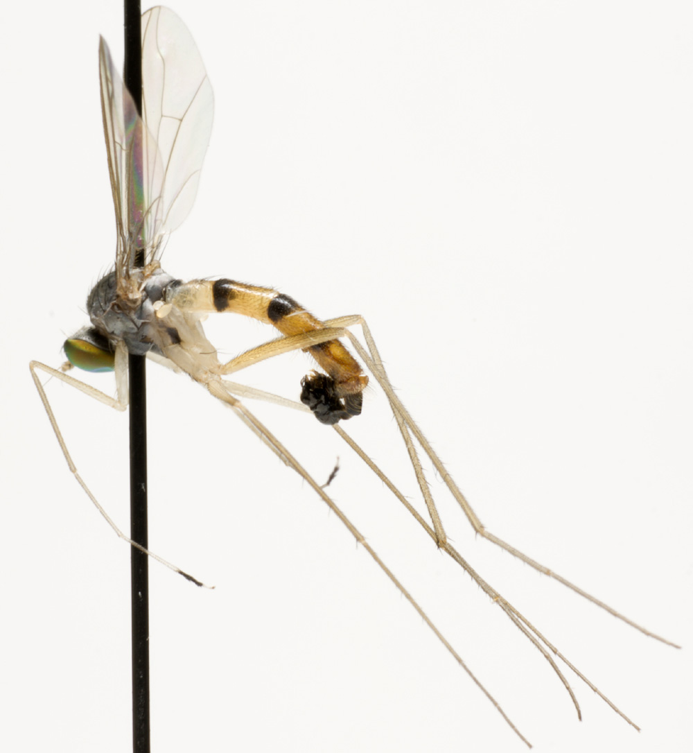 Pinned Neurigona quadrifasciata, Dolichopodidae