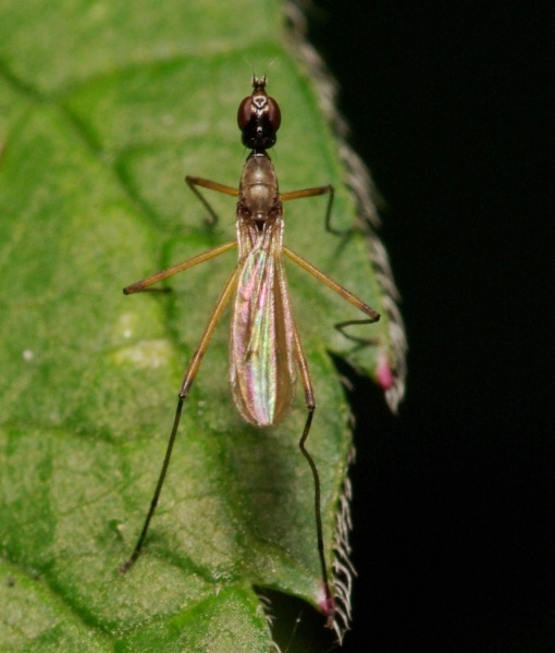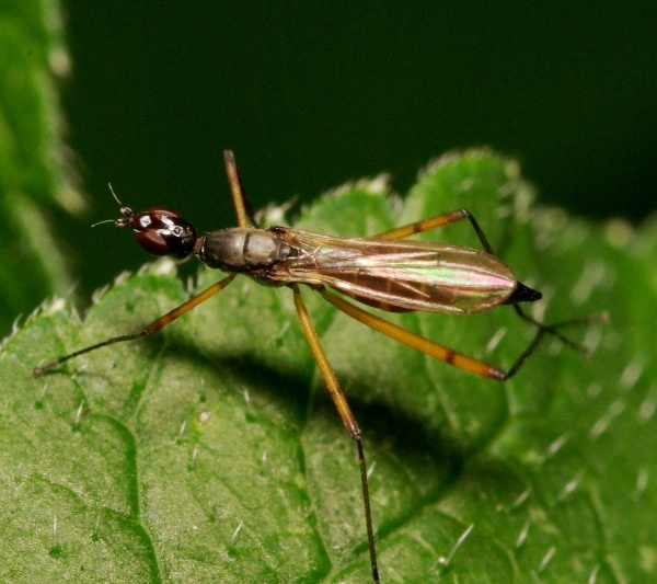 Because the black bands on legs 2 and 3, I think it is a Micropeza corrigiolata female. Anyone? |