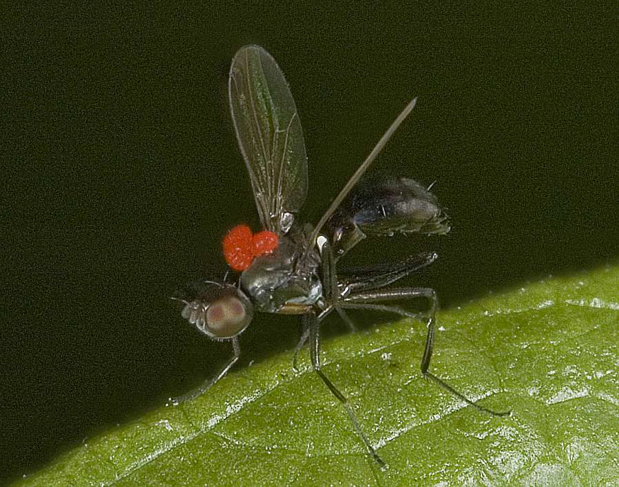 The best photo before it runned away. It is like Sepsis fulgens(from far, behaviour and size), but to the best of my knovledge it should have black dot on vings, also the body shape does not match. And obvious question , what is red thing on its back ? BubikolRamios attached the following image: ![]() [99.21Kb] |