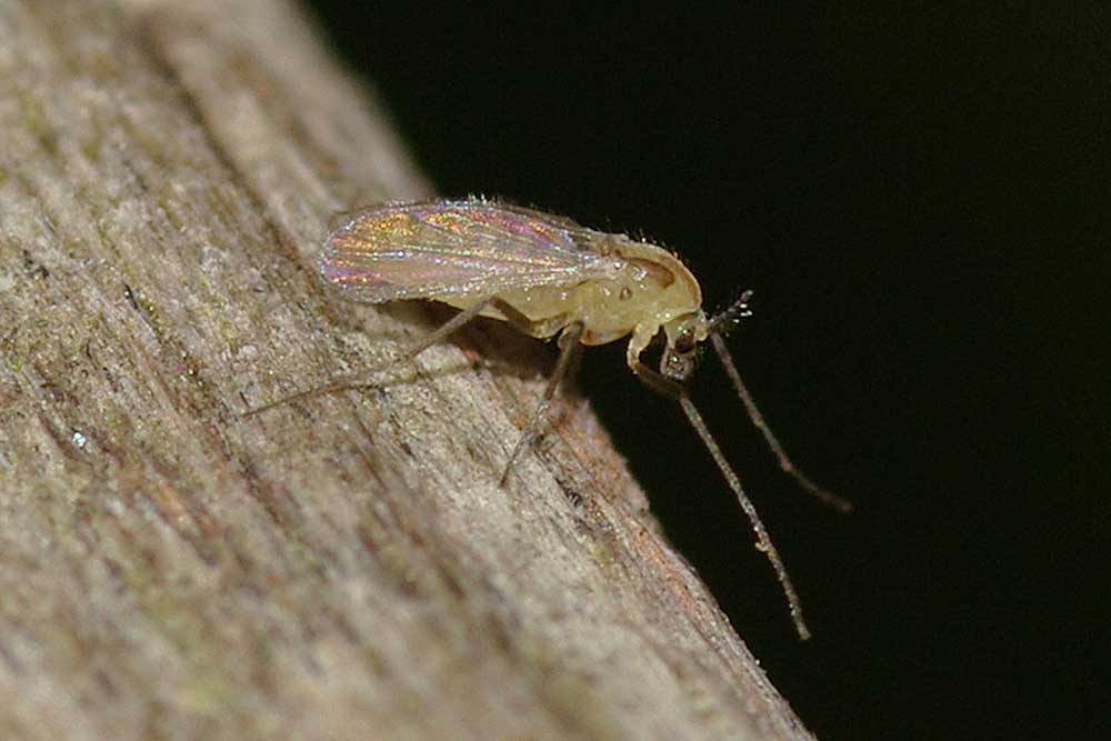 Sitting on the fence in my garden this evening, what kind of midge is this?? Size <1mm max.