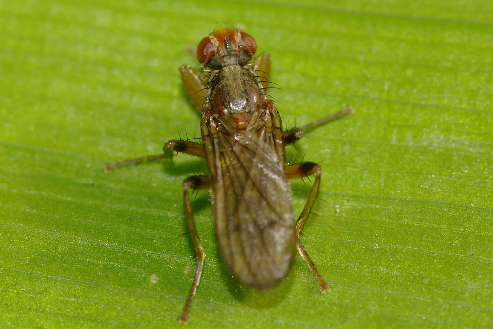 I was photographing a little yellow Collembola when this fly pounced on it and proceeded to eat it. ![]() Looking at the front femur spines I think it may be some species of Norellia...Right or Wrong? Roger Thomason attached the following image: ![]() [135.08Kb] Edited by Roger Thomason on 06-07-2009 16:22 |