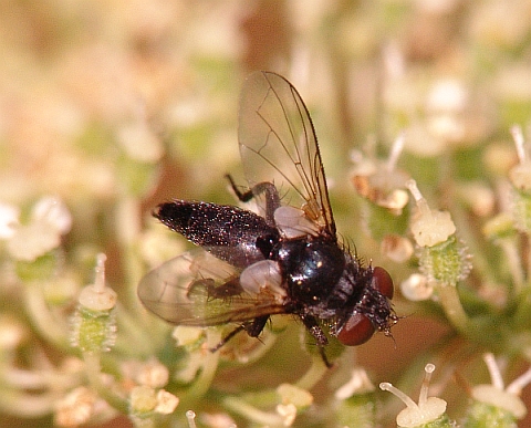 Good call, yes this looks like a Leucostoma, with those large white calypters - nice sighting - I have never caught one here in England