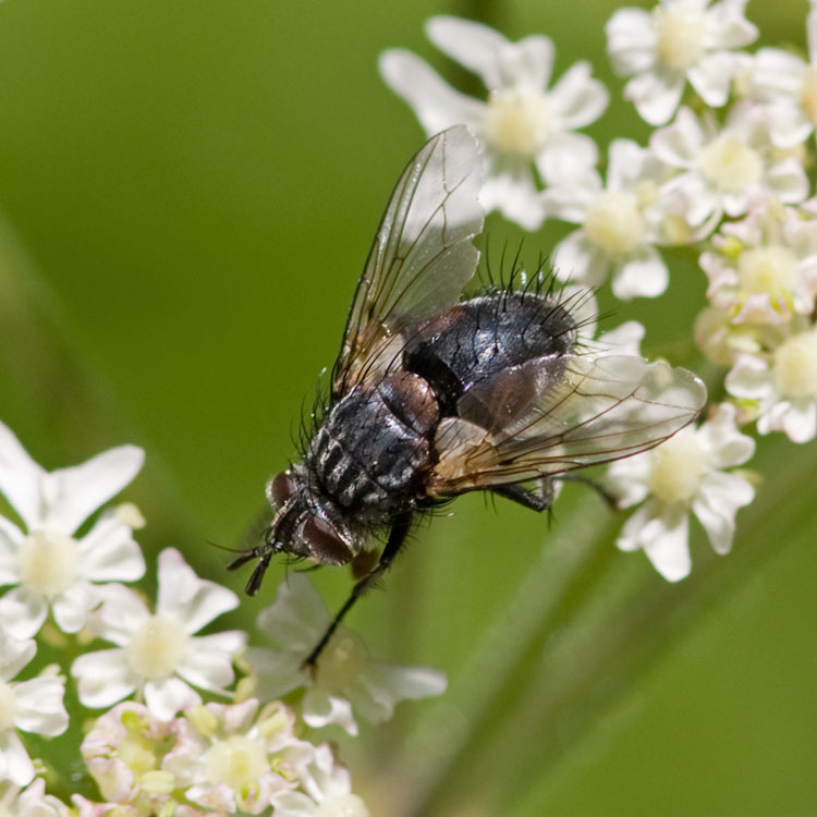 Gorge du Flume, near St Claude, French Jura. Heavily forested gorge, with few open spaces. This one was on open space surrounding building, on Hogweed.