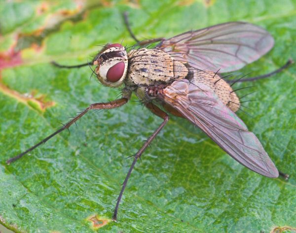 Got some useful shots of this earlier and tried to key it out. Arista hairy, proboscis short, couldn't see the ridge between antennae but guessed it was there, excavation reaches margin of 1+2, bend in medial vein more or less right angled = Dexia; no black on abdomen, quite large = rustica. And it matches the photos I found in the gallery. Hope I got it right. 22/8/2009; Devon, England Thanks Tim tim worfolk attached the following image: ![]() [115.05Kb] |