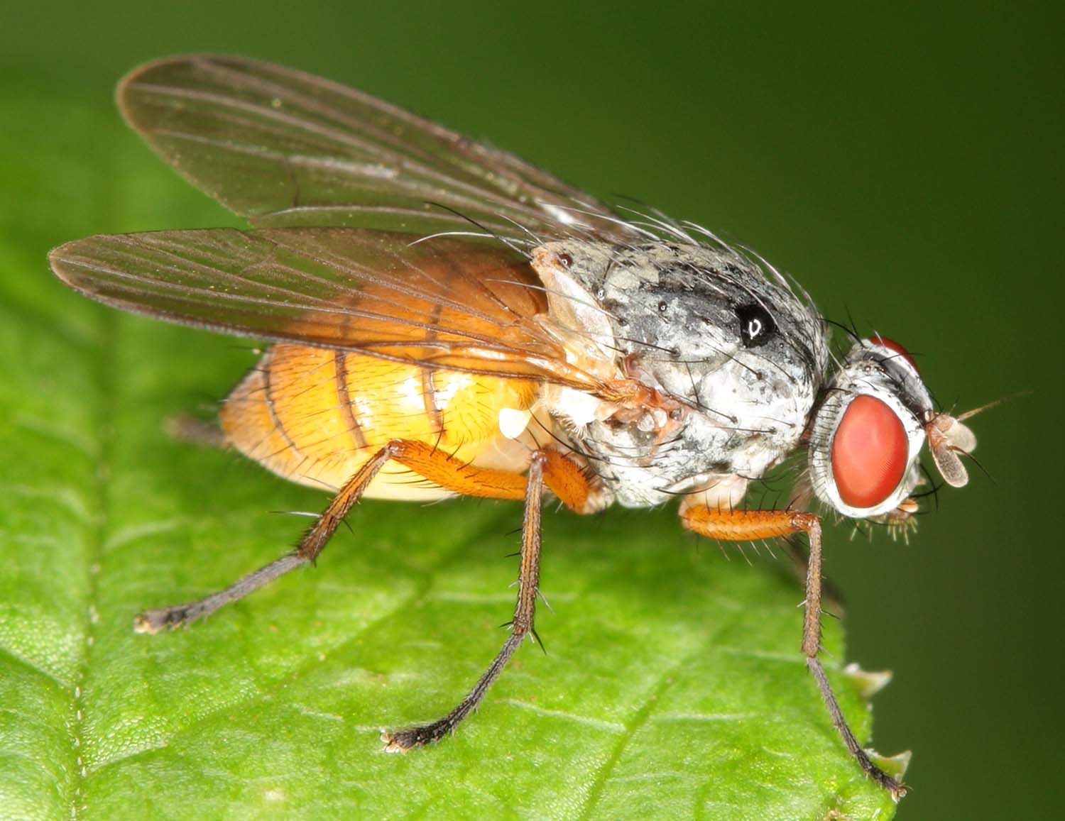 I'm guessing Fanniidae based on the wings, am I right? Looks more like.. Anthomyiidae Pegomya sp. (sc line not straight towards costa, frontal produced forwards...) Joke Edited by javanerkelens on 22-08-2009 14:57 |