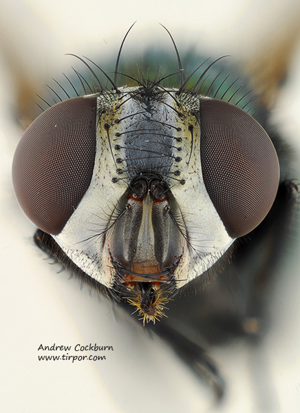 So I'm pretty sure it is a Calliphorid (edit) (calypters well developed, arista plumose) and female (eyes separate) but what else do I need to be sure that this is Lucilia caesar or is it something else ? Is the red ring at the base of the 3rd antenna segment significant ? What about the colouration around the base of the setae between the eyes at the top of its head (orbital bristles ?) ? The eyes were much brighter red when fresh. Specimen collected in Cape Cod, Eastern America. AndrewC attached the following image: ![]() [104.66Kb] Edited by AndrewC on 22-08-2009 22:54 Thanks, Andrew |