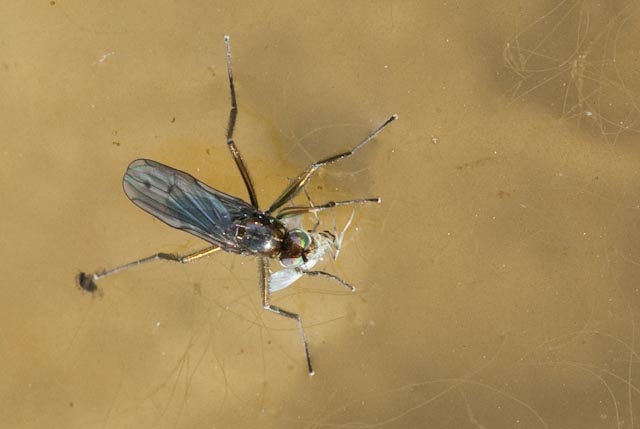 ...... that was the name I gave to that fly, when I saw it walking or better running on the water of a little lake in the mountain, about 2000m high. But then I saw a little butterfly falling in the water, and about one dozen of this flys jumped on the butterfly and sucked its blood. And that is not Jesus-Christ-like, so I'm sure, that my name ist wrong. Who can help me find the right name? By the way, there have been hundreds of this flys on the water-surface. Foto: CH, SG, Chäserrugg, 2000 m, 28.8.2009. Andre Megroz attached the following image: ![]() [45.91Kb] |
