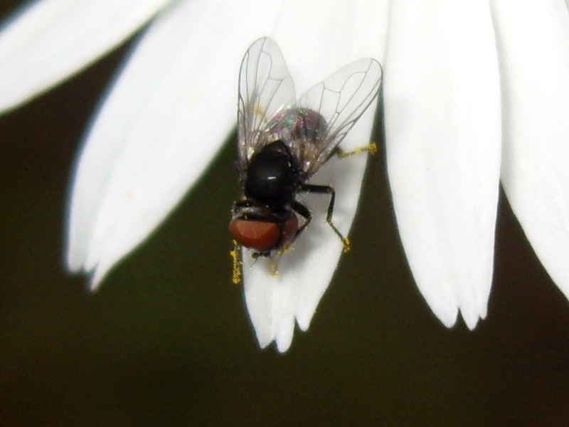 small black fly with big red eyes. --> Phasia