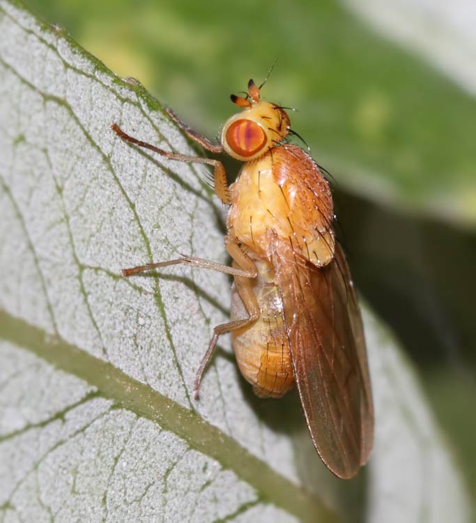 a 4-5 mm orange fly--> Lauxaniidae--> Probably Sapromyza obsoleta group