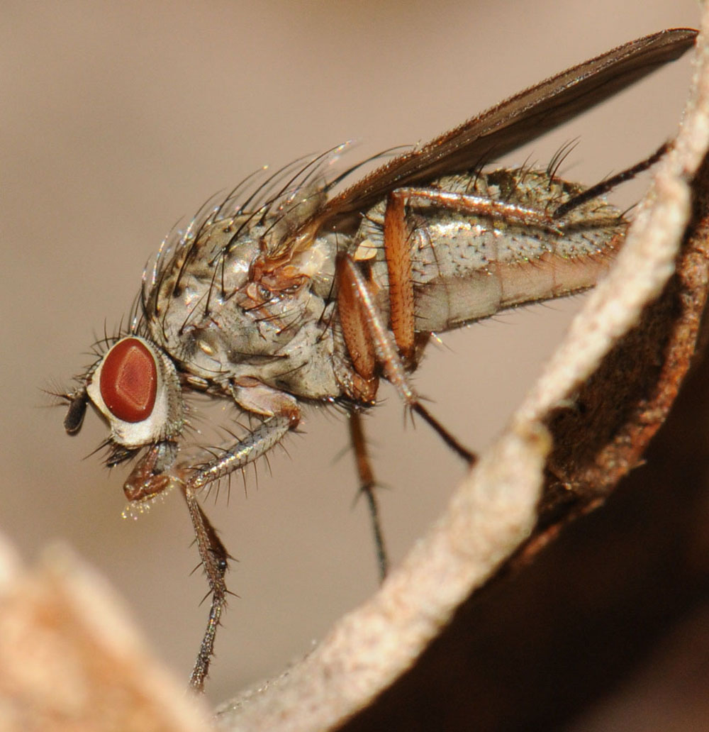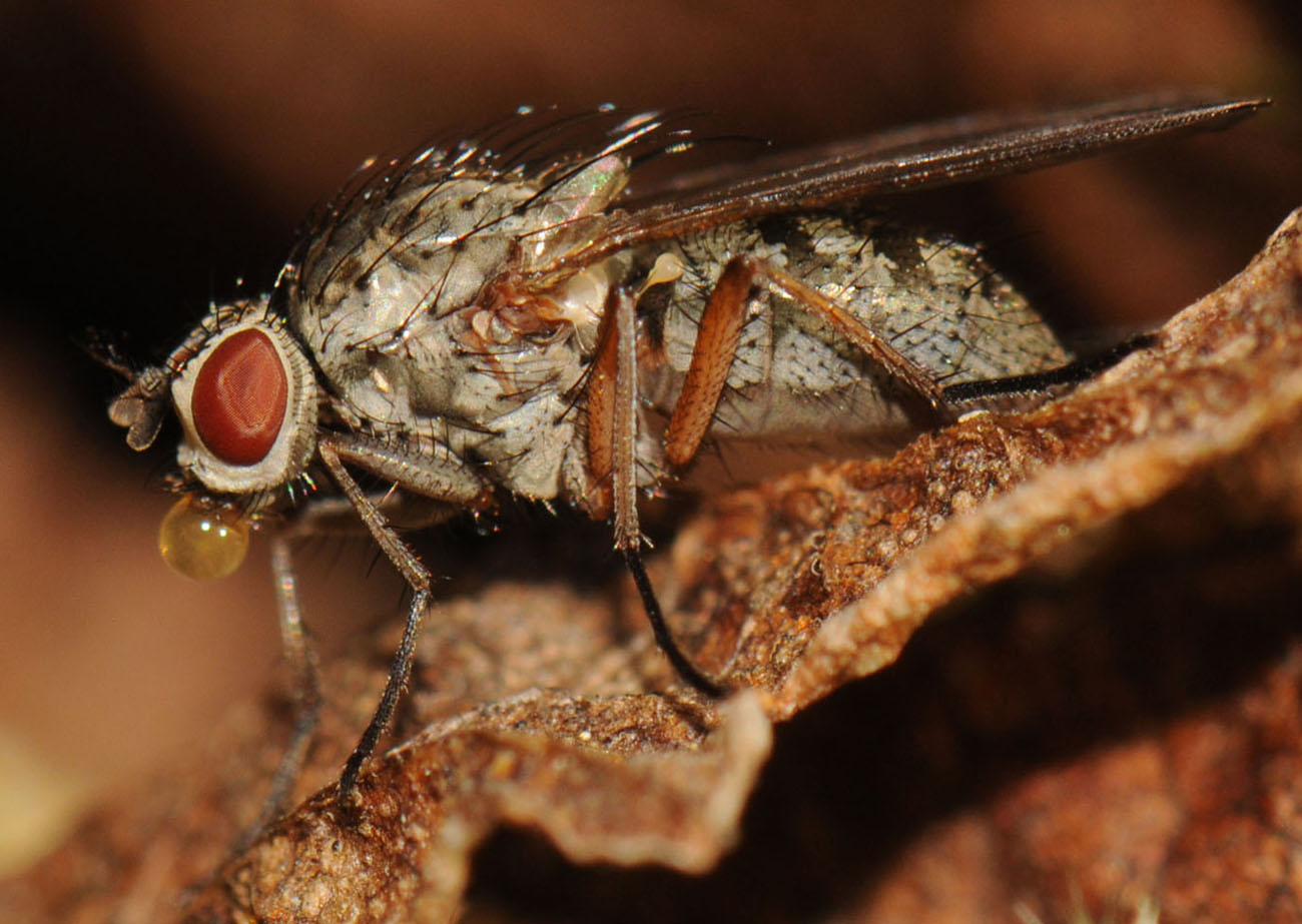 This Anthomyiidae female has plumose arista, 2 pre DC, 3 post DC, mid and hind femora orange ---> Hylemya vagans/nigrimana ? Could the ventral view help to separate vagans from nigrimana ? (about 7mm,28-10-2009,Belgium) I observed her during 32 minuts (14.24 to 14.56) feeding on an excrement (pic 1 to 3). Then she found a warm place on a dry leave (no wind and in the sun) pic 4 and 5. She began to bubble 3 minutes later (14.59, pic 6), aspirated the bubble 1 minut later (15.00, pic 7), and then maked immediately another brown opaque bubble (15.00, pic 8). In the post about bubbles there are different hypothesis, but in this case I suppose that the bubbling is in relation with the feeding ? Christine Devillers attached the following image: ![]() [191.12Kb] Edited by Christine Devillers on 07-11-2009 20:36 |