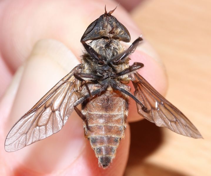 Exact size, so you measured it ? This is very large for a male. It is not a Hybomitra, but a Tabanus. I'd guess T. tergestinus, however, the size does not match. Could a see a pic of the venter / sternites ? Theo |