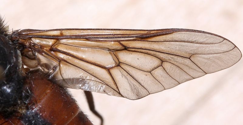 I'm starting to have more doubts. The first posterior cell is not narrowing at all, as I'd guessed from the previous pics. I have never seen this in tinctus (I just checked my collection). Moreover, the upper facets in eye are strongly enlarged, as in autumnalis or sudeticus (which it is both obviously not). This leaves only one possibility, which would be very interesting: the male of spodopteroides. Spodopteroides is often not as dark as given by Chvala et al.: the hind tibia is clearly reddish in most specimens I've seen. The antenna is rather reddish for this species. I have never seen the male of spodopteroides, so the ID is not more than tentative. From what locality / habitat was the fly ? Theo |