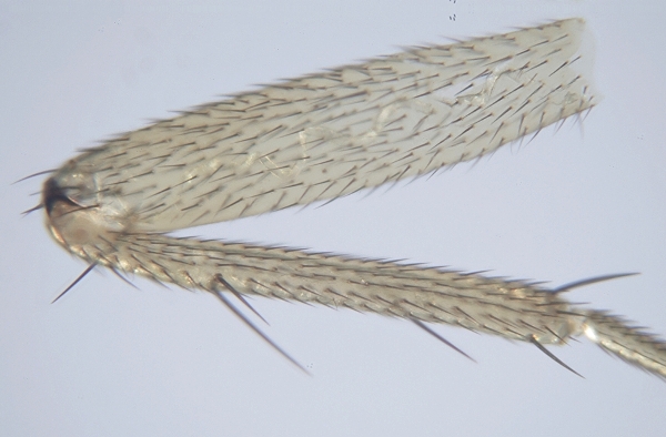 Hi, I can't get to anywhere with this Lonchoptera, ist there a chance? Female, bigger, almost 3 mms, yellowish-brownish, with some black stripes on thorax as I recall. It was in a light-trap. This is the 2nd leg: