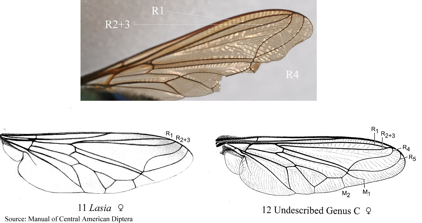 another. Well, this call my attention because the wing venation doesn't fit for Lasia specimens. Lasia has R2+3 clearly separated from R1 vein which is not the case. Also the ripples in the wing are rather strong. There is an undescribed genus similar to this one except in the R4 vein.. Here the vein R2+3 ends in R1. Even the R4 ends before wing margin reaching near the junction of R2+3 with R1! Later I must check out the empodium.. jorgemotalmeida attached the following image: ![]() [183.98Kb] Edited by jorgemotalmeida on 24-04-2010 13:13 |