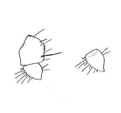 This is the original description of Meoneura pseudotriangularis: A moderately pruinose species with black thorax and legs. Frontal triangle shiny, terminating in anterior 7/17 of frons. Frons, facial plate and genae black, only anterior margin of frons with some dark reddish tinge. Gena not wide, its narrowest section less than 1/4 of eye lenght. Though dorsal side of holotype rather damaged, surely 3 pairs of dorsocentrals present. Also tarsal joints wholly black; fore femur poseroventrally with 2 strong bristles, joined by a shorter one subapically. Wing brownish, veins darker brown, costa without spiniform setae. Wing dimensions of holotype: 1.06x0.47 mm. Stalk of halteres brown, knob yellow. Basic structure of male genitalia similar to that of triangularis Coll.: no lamellae present, base of surstylus very wide, not triangular but spade-shaped, comparatively larger than in triangularis, its anterior edge with a row of long, thin, setifrom hairs. Genital vault similar to that of triangularis, with some short and ventro-perianally one long and comparatively thick hair. Aedeagus short and thick, basally very stout, apically attenuating. Body lenght: holotype male: 1.20 mm. M. pseudotriangularis can be distinguished form triangularis Collin by the shape of the male surstylus and the shorter frontal triangle. And I've re-drawn the original drawings of male genitalia: first the genital vault and surstylus laterally and below surstylus at its greatest expansion. pwalter attached the following image: ![]() [9.88Kb] Walter Pfliegler - Amateur Nature Photographer from Hungary (and molecular biologist) |