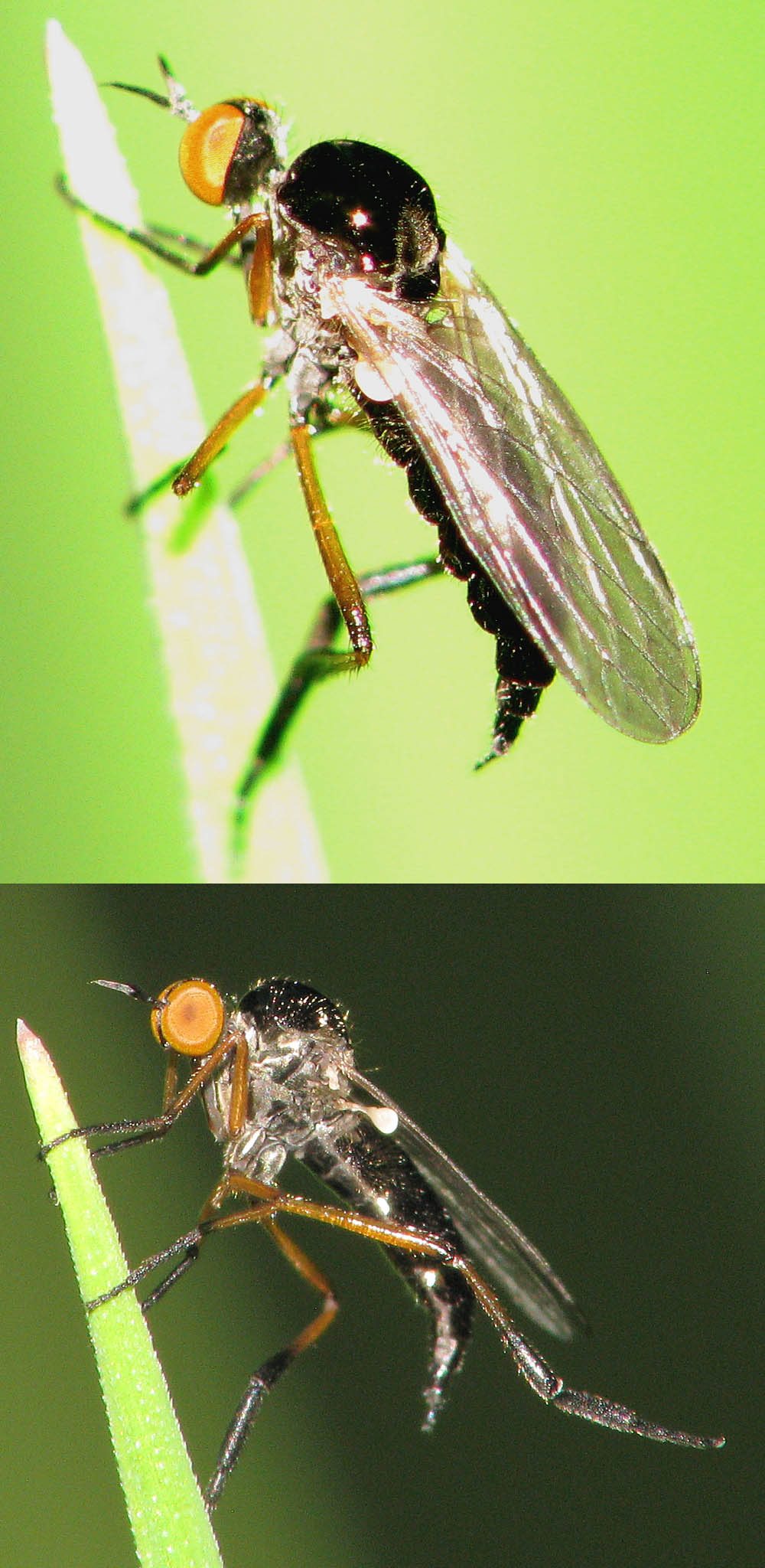 Hi, Yesterday I found this nice small Empis female in a wood 50 km west of Stuttgart, in southwestern Germany. It was very efficiently hiding the rostrum, which made me think of Hybotidae first, but Empis (Lissenpis) nigritarsis should be a much safer ID that will hopefully be confirmed. Thanks in advance, Sundew Sundew attached the following image: ![]() [227.97Kb] |