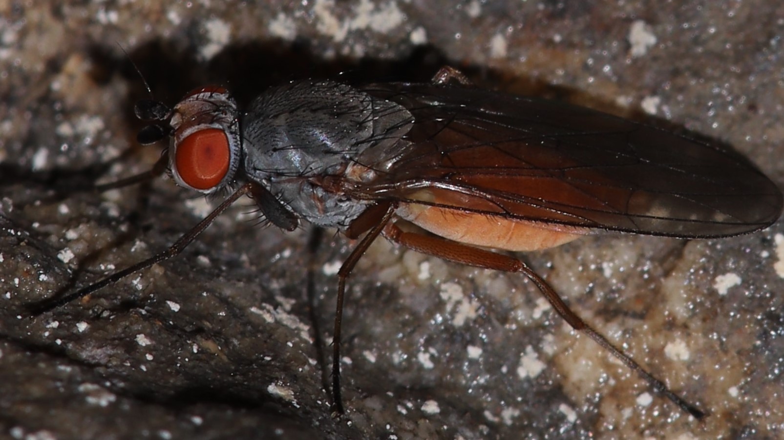 Fly with orange abdomen -> Heleomyzidae