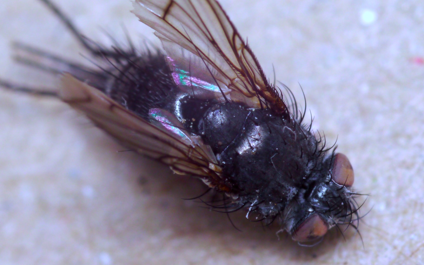 Black Tachinid with marked wings