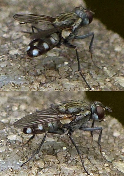 Hallo Bavaria, many of these flies where at my garden pond, during the hole summer. 6mm I guess. I would say genus Lispe. L. tentaculata? Is the first one a female, and the second one a male? Regards, Dennis Dennis attached the following image: ![]() [109.95Kb] Edited by Dennis on 10-08-2021 19:45 |