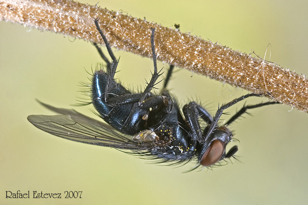 Hello again, This bluish fly of abut 9 mm was taken on dry grassland on a river bank. Corujo-Vigo (Pontevedra) Spain, 6th december 2007. Thanks in advance for your comments.- Rafael Rafael Estevez attached the following image: ![]() [147.07Kb] |
