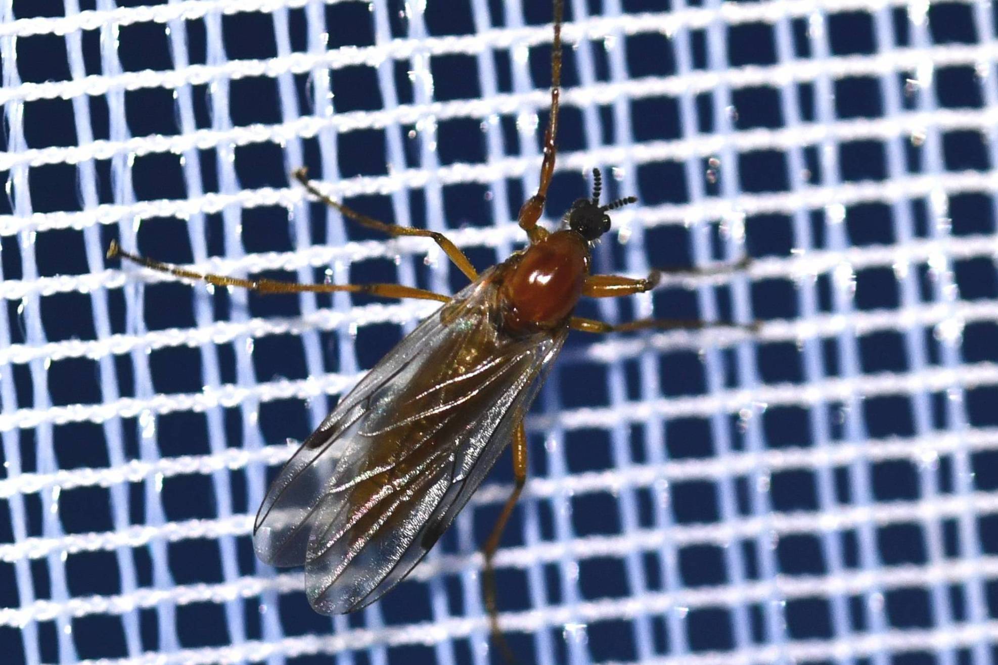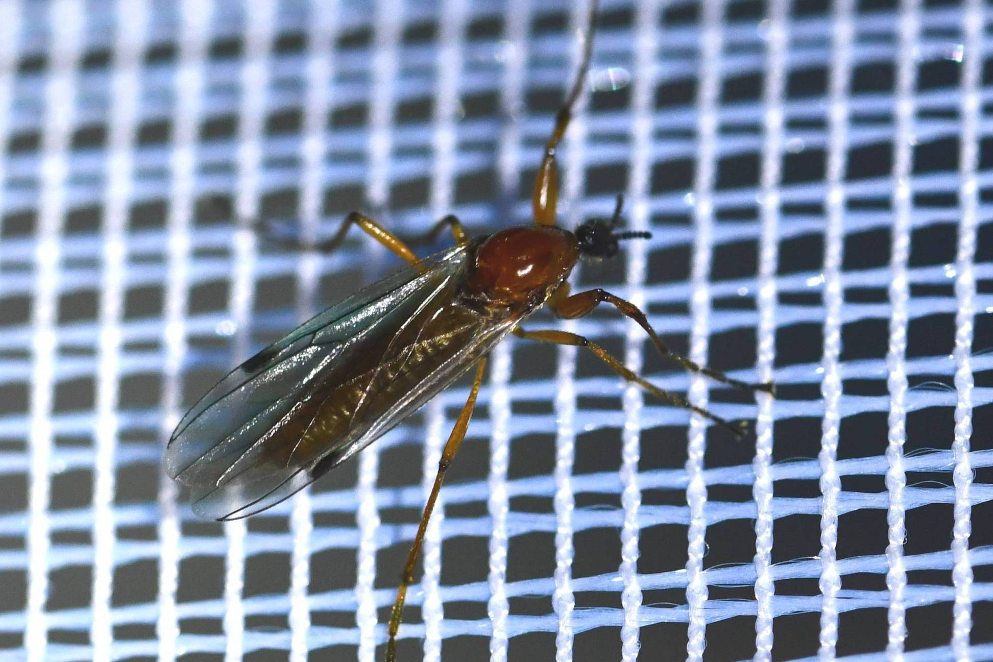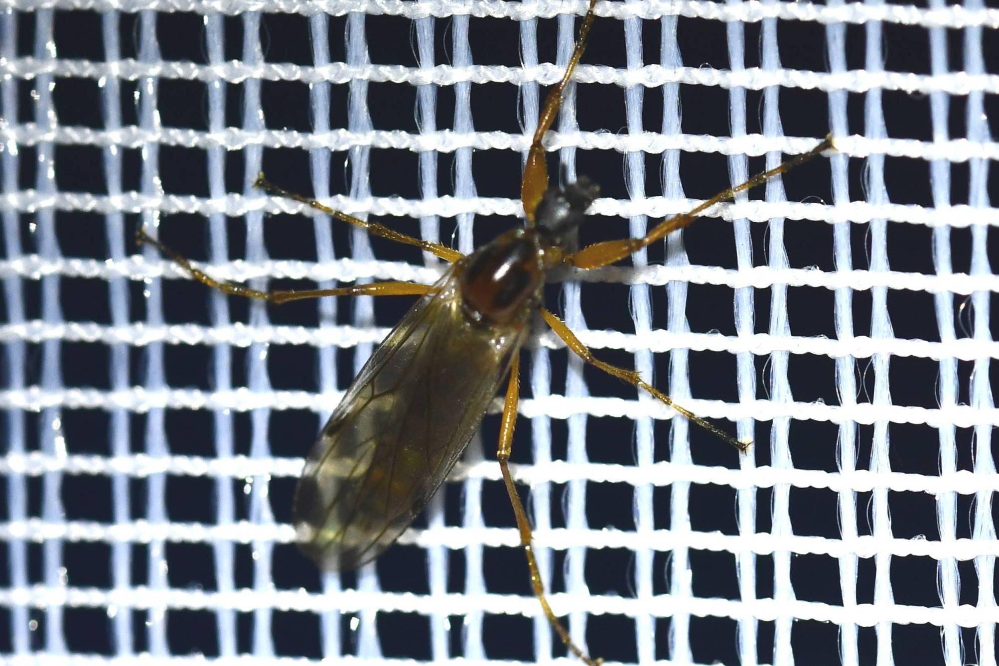 There are only two species likely to be found in October, Bibio longipes and Bibio clavipes. |